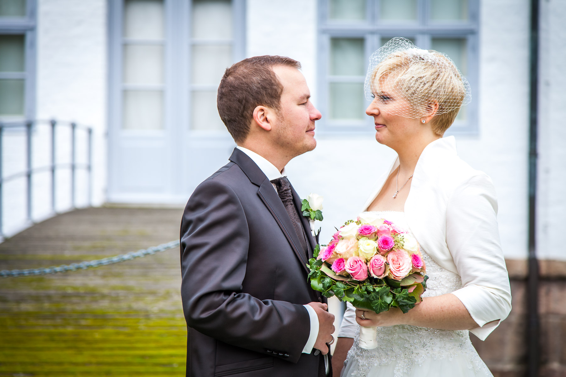 Als Location hatten sich Mona und Thomas das Standesamt im Schloss Ahrensburg im Osten Hamburgs ausgesucht. Das Schloss in Ahrensburg ist eine sehr begehrte Location für Hochzeiten aus Hamburg und der nähren Umgebung – und zudem eine tolle Kulisse für Hochzeitsfotos! 🙂 Hier kann man ohne Probleme weitere Elemente wie Brücken oder den angrenzenden Teich etc. mit in die Hochzeitsbilder einbeziehen. So etwas mag ich als Hochzeitsfotograf ja immer ganz besonders gerne… 🙂
