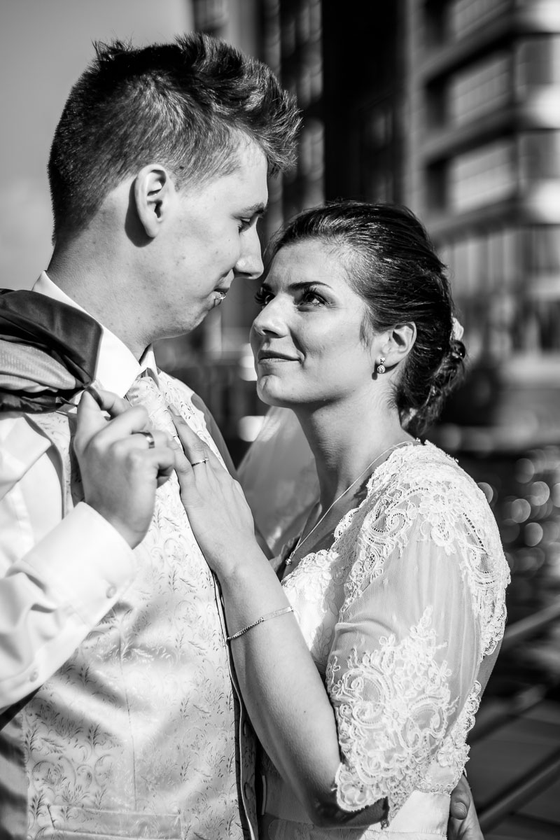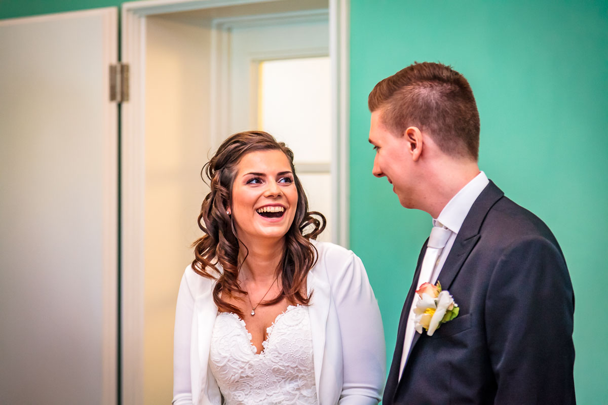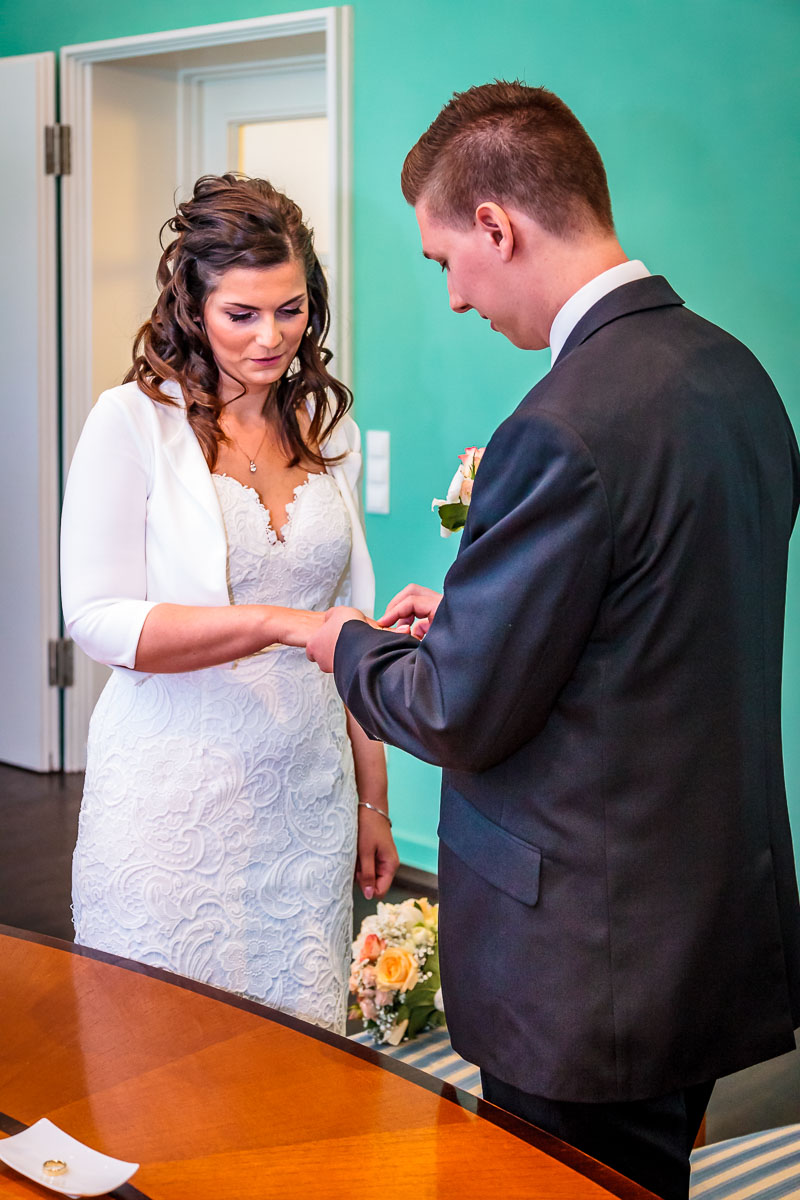 Am Freitag pünktlich um 12:00 Uhr fand die standesamtliche Trauung im Harburger Rathaus statt. Bei schönstem Hochzeitswetter trafen alle Gäste ein und die Trauung konnte beginnen. An dieser Stelle möchte ich noch erwähnen, dass der Standesbeamte wirklich sehr lustig war. Im Laufe meiner Zeit als Hochzeitsfotograf habe ich schon sehr viele Standesbeamte, Trauredner, Pfarrer und Pastoren erlebt, doch der Herr aus Harburg war wirklich sehr lustig – er hat seinen Job wirklich echt gut gemacht und ist nicht nur den Gesetzestexten gefolgt. Da habe ich durchaus schon „schwerere Kost“ erlebt. 😉