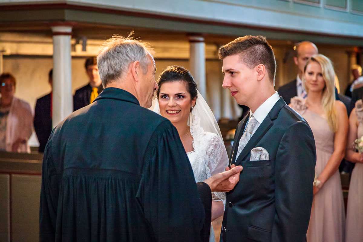 Am Samstag fand dann im größeren Kreis die kirchliche Trauung sowie die abendliche Feier statt. Als Kirche hatten sich Kea und Marco die Kirche St. Mauritius in Hittfeld ausgesucht. Die Kirche südlich von Hamburg ist malerisch auf einer kleinen Anhöhe gelegen und ist sehr gut für Hochzeiten geeignet.