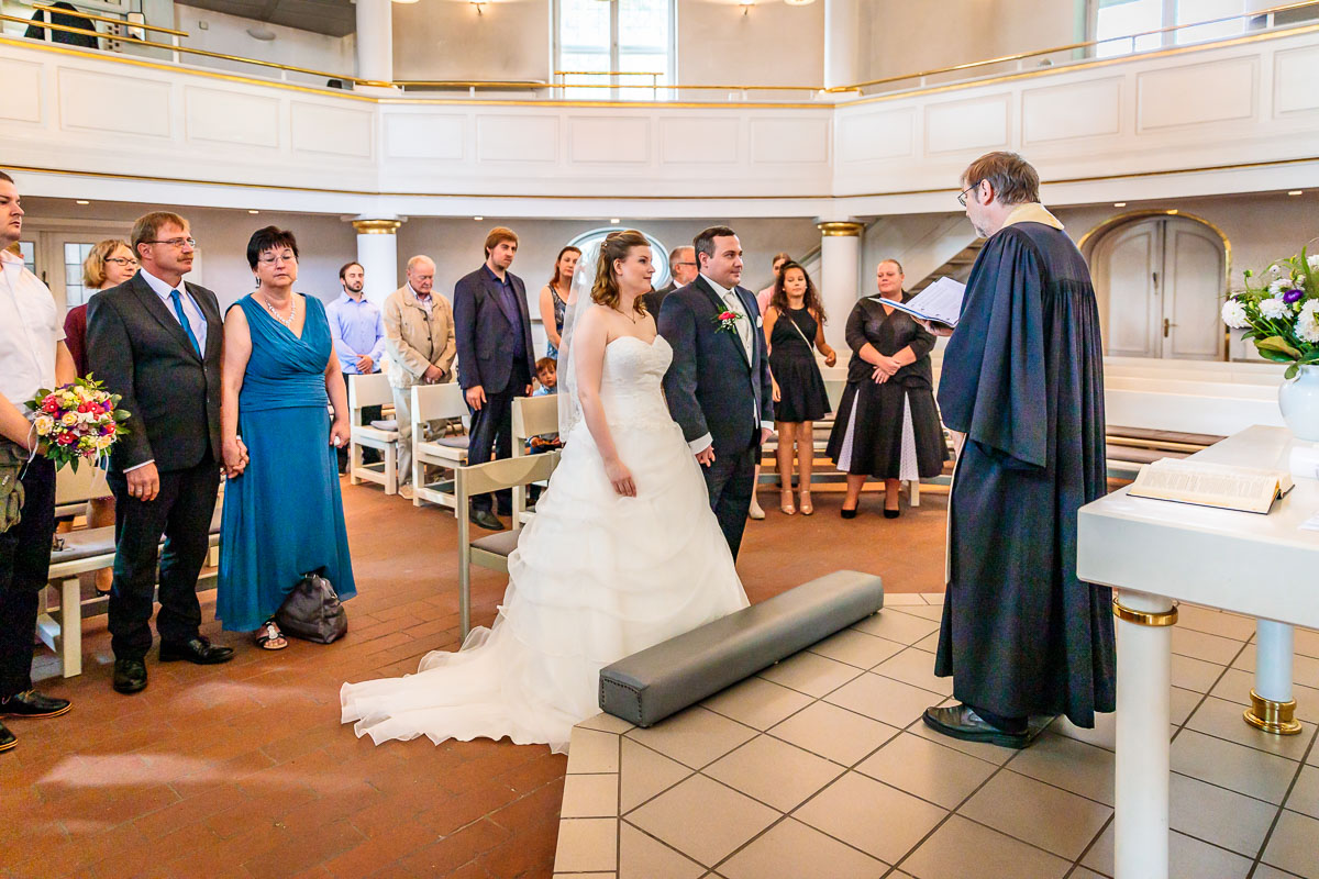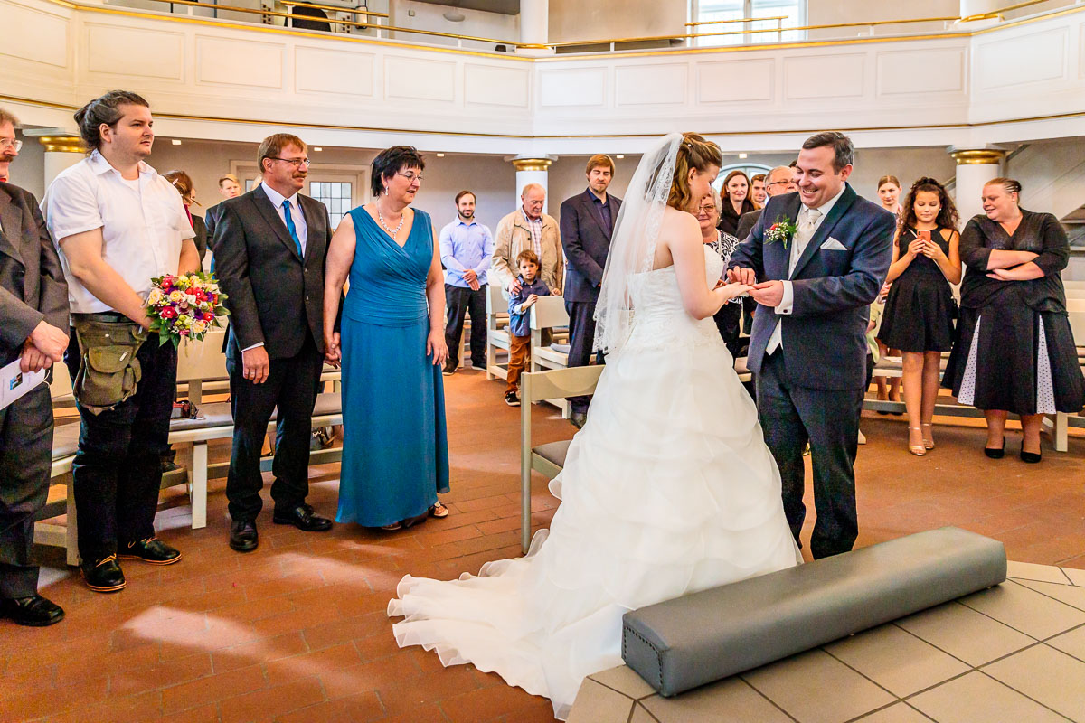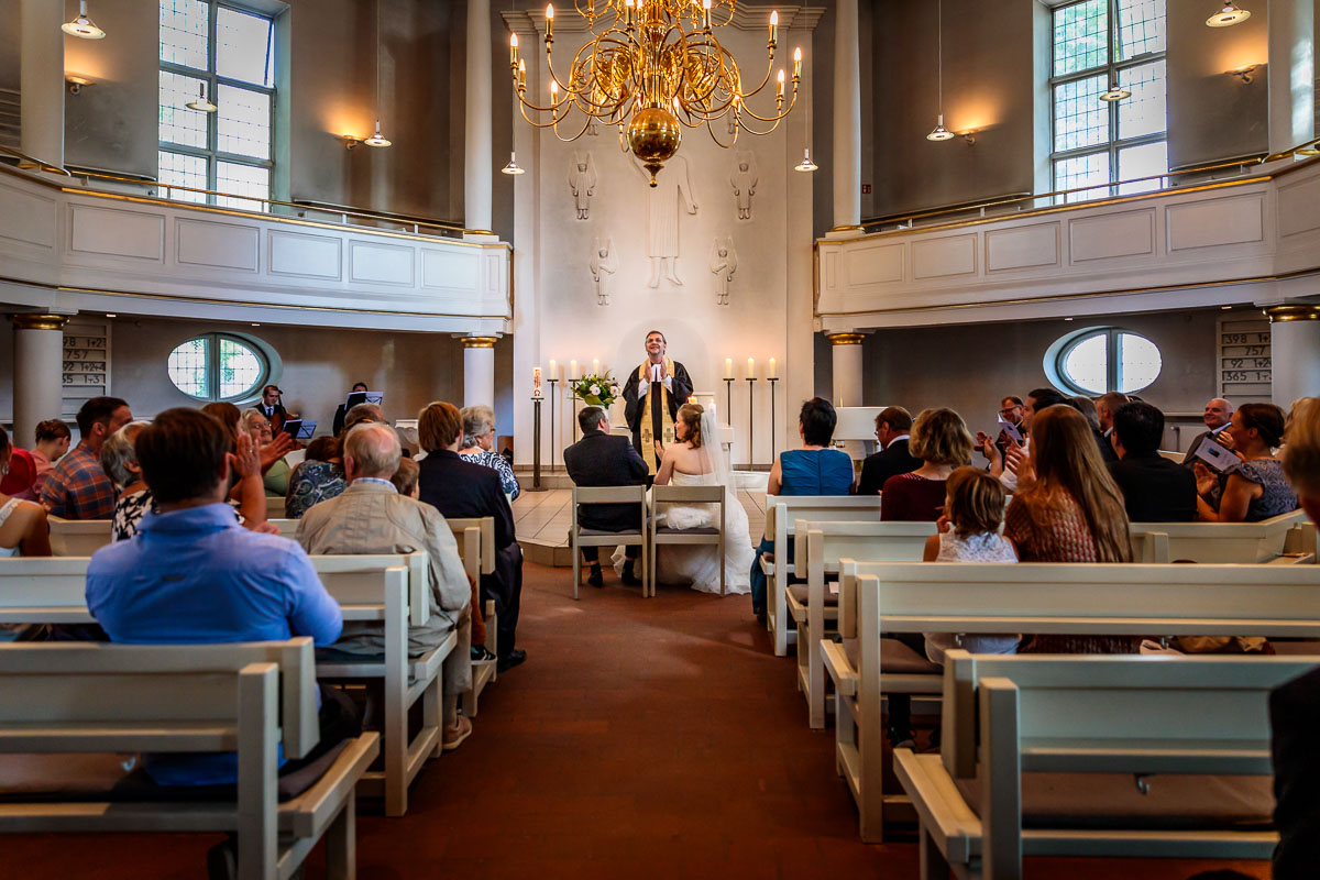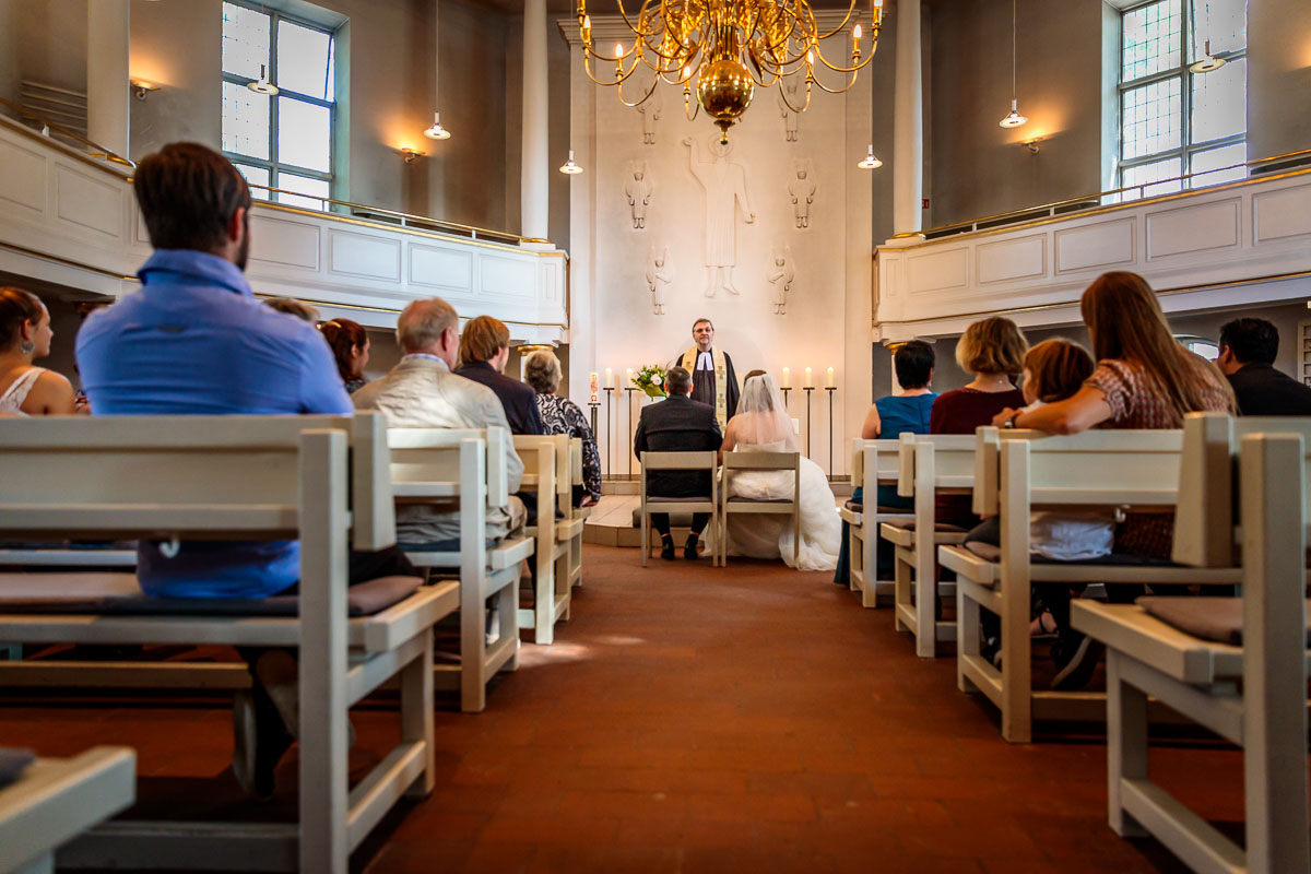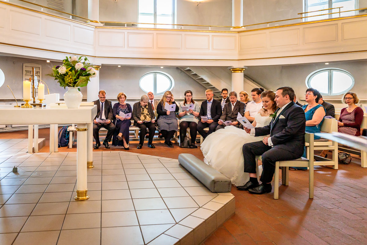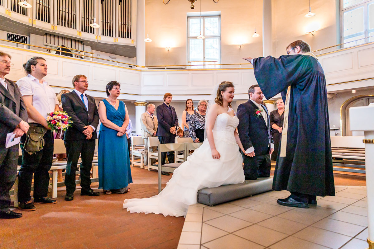 Die kirchliche Trauung von Tanja und Matthias fand in der Osterkirche in Hamburg statt. Die Osterkirche ist eine wirklich sehr schöne Kirche und sie eignet sich aus meiner Sicht sehr gut für eine kirchliche Hochzeit in Hamburg. Die Trauung ging um 15:30 Uhr los und war nicht zu letzt dank des Pastors sehr kurzweilig. Offensichtlich kannte der Pastor das Hochzeitspaar schon etwas länger, denn der gesamte Gottesdienst war sehr persönlich gestaltet, sehr locker und teilweise auch sehr lustig. Solch einen Pastor wünscht man sich öfters. 🙂