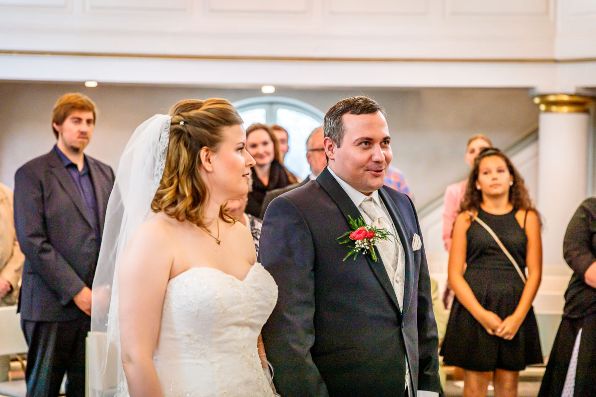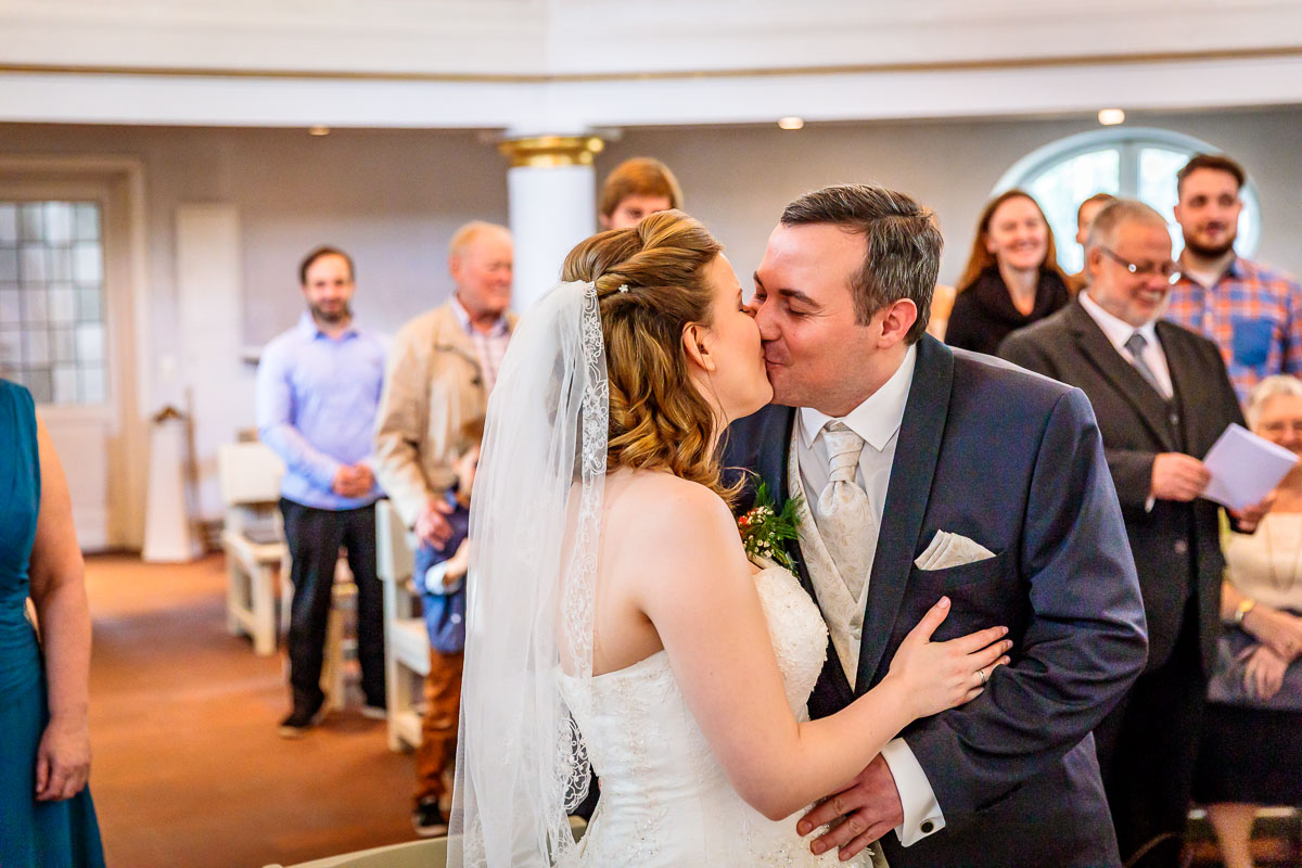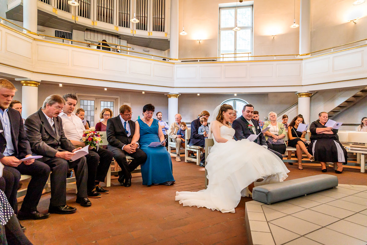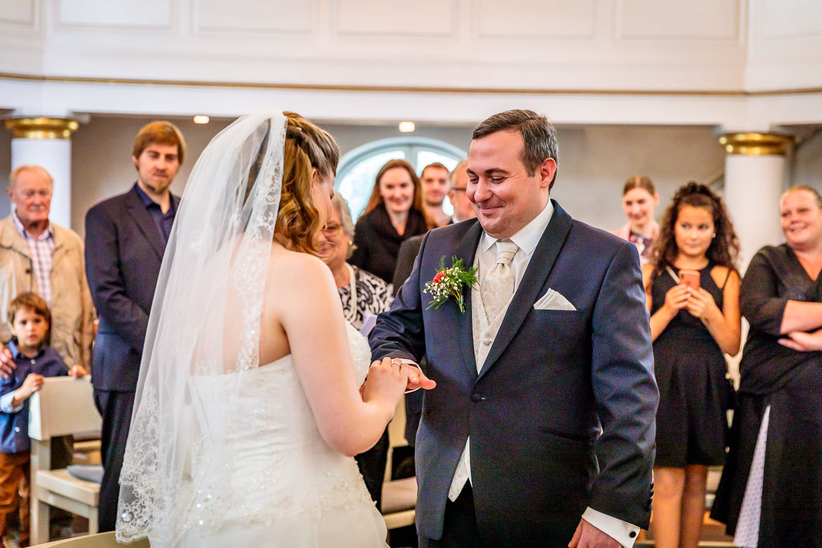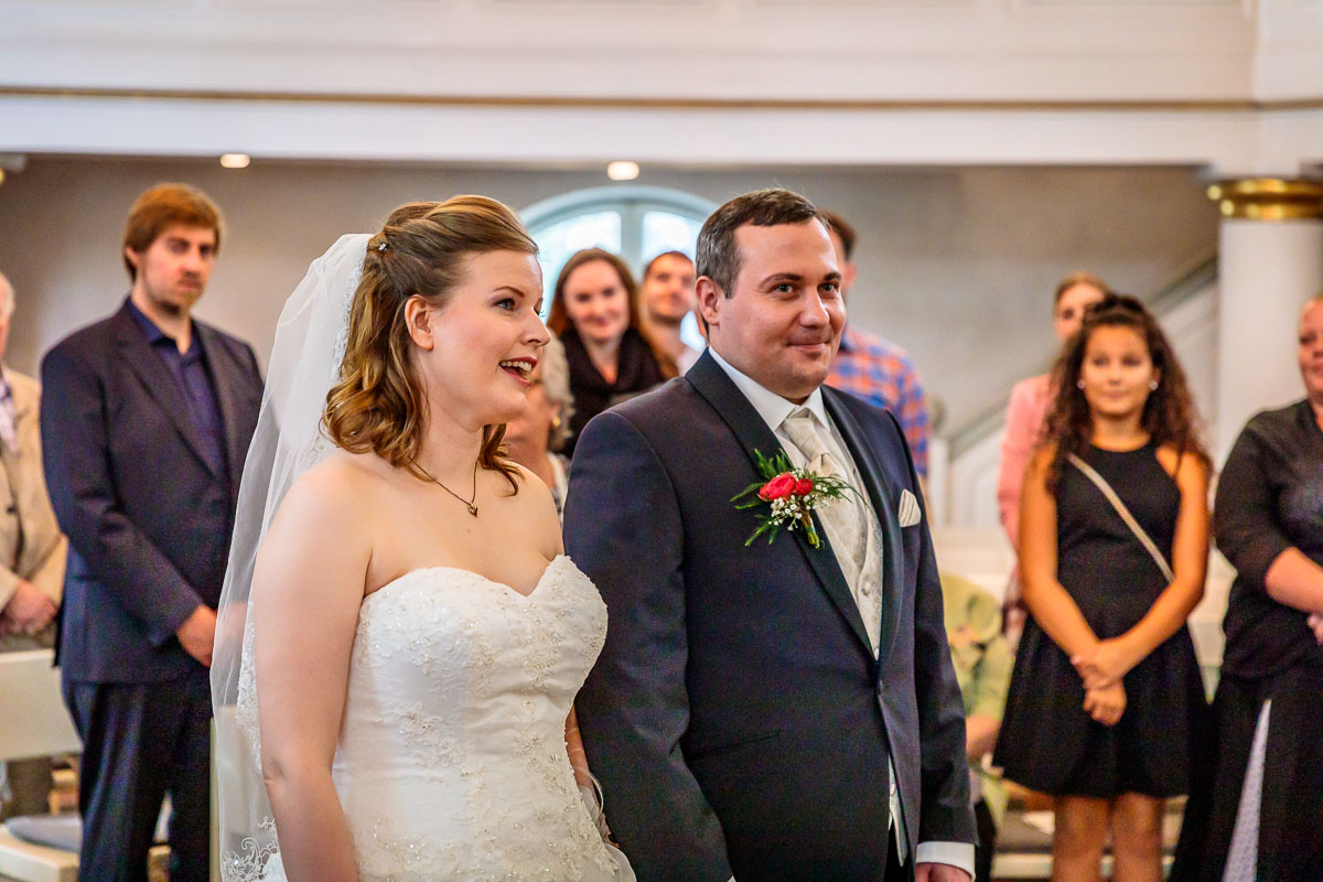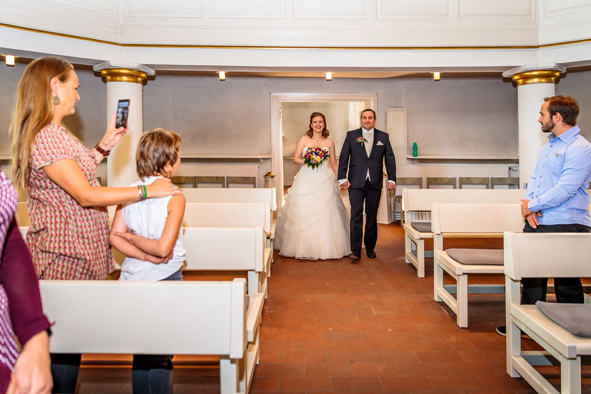 Die kirchliche Trauung von Tanja und Matthias fand in der Osterkirche in Hamburg statt. Die Osterkirche ist eine wirklich sehr schöne Kirche und sie eignet sich aus meiner Sicht sehr gut für eine kirchliche Hochzeit in Hamburg. Die Trauung ging um 15:30 Uhr los und war nicht zu letzt dank des Pastors sehr kurzweilig. Offensichtlich kannte der Pastor das Hochzeitspaar schon etwas länger, denn der gesamte Gottesdienst war sehr persönlich gestaltet, sehr locker und teilweise auch sehr lustig. Solch einen Pastor wünscht man sich öfters. 🙂