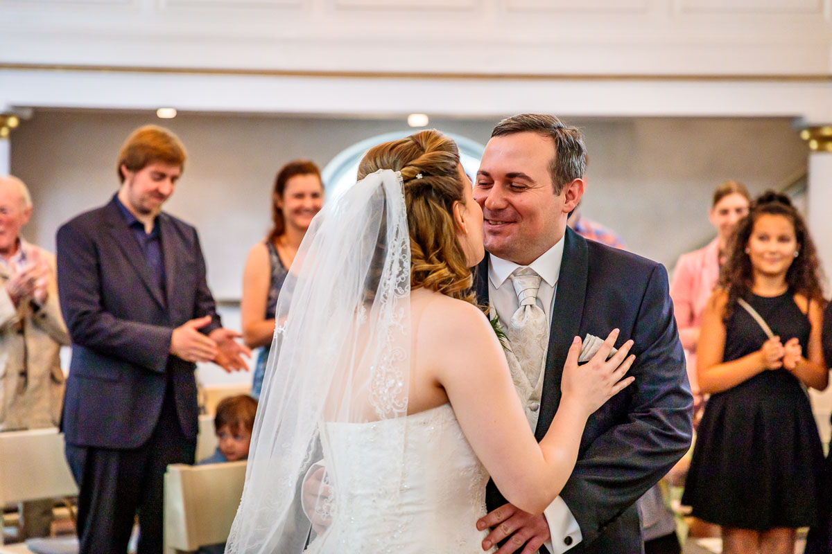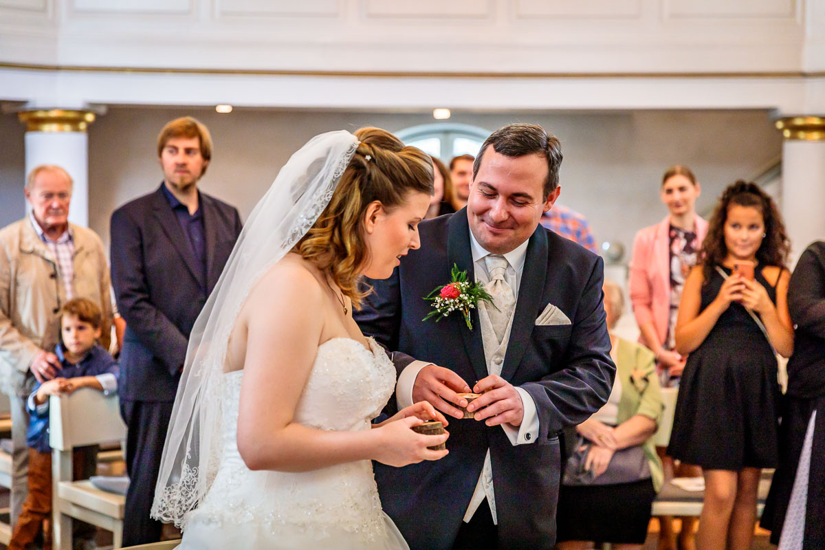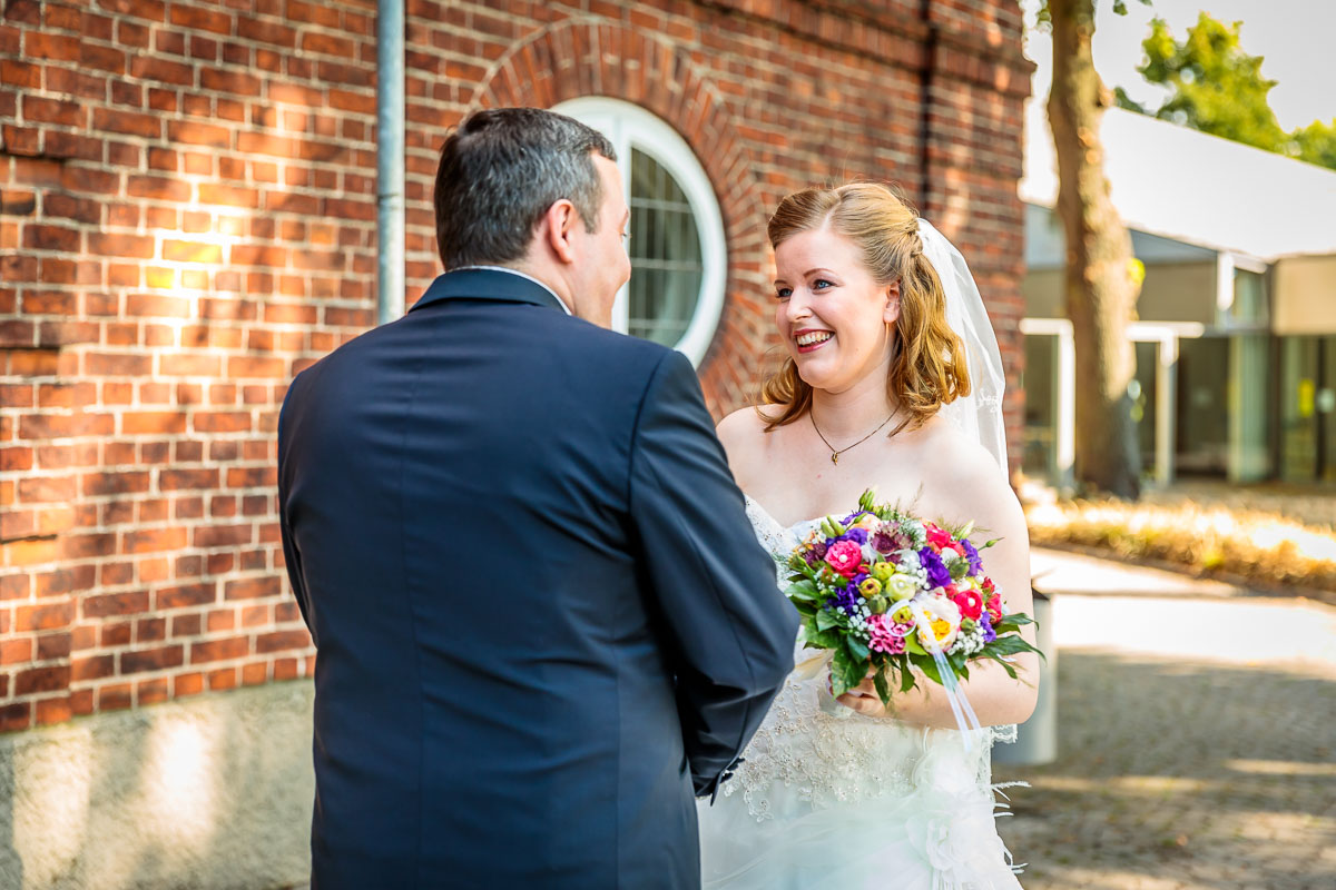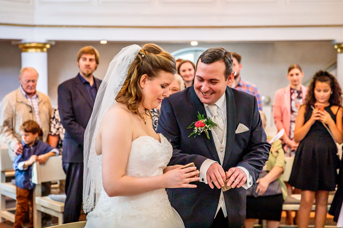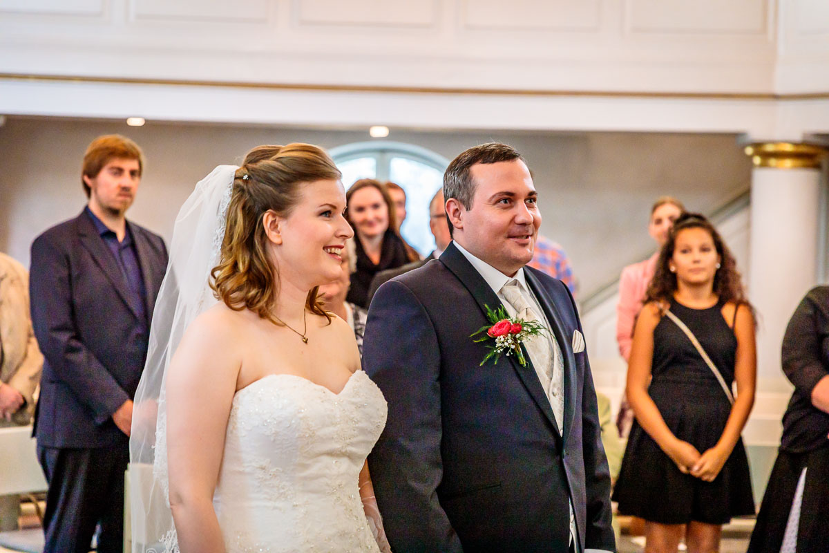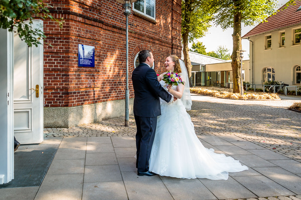 Die kirchliche Trauung von Tanja und Matthias fand in der Osterkirche in Hamburg statt. Die Osterkirche ist eine wirklich sehr schöne Kirche und sie eignet sich aus meiner Sicht sehr gut für eine kirchliche Hochzeit in Hamburg. Die Trauung ging um 15:30 Uhr los und war nicht zu letzt dank des Pastors sehr kurzweilig. Offensichtlich kannte der Pastor das Hochzeitspaar schon etwas länger, denn der gesamte Gottesdienst war sehr persönlich gestaltet, sehr locker und teilweise auch sehr lustig. Solch einen Pastor wünscht man sich öfters. 🙂