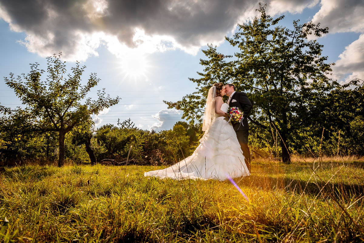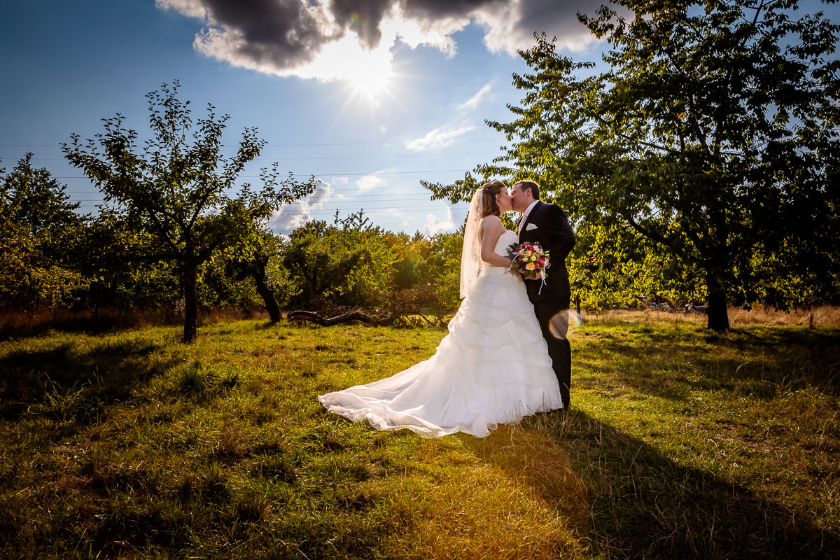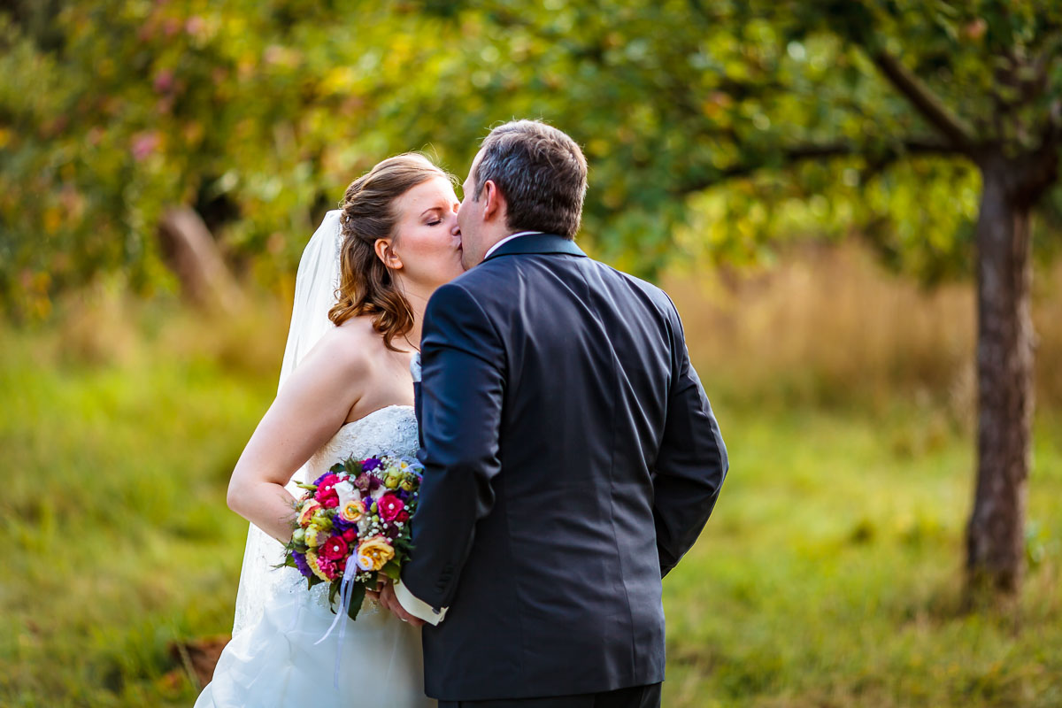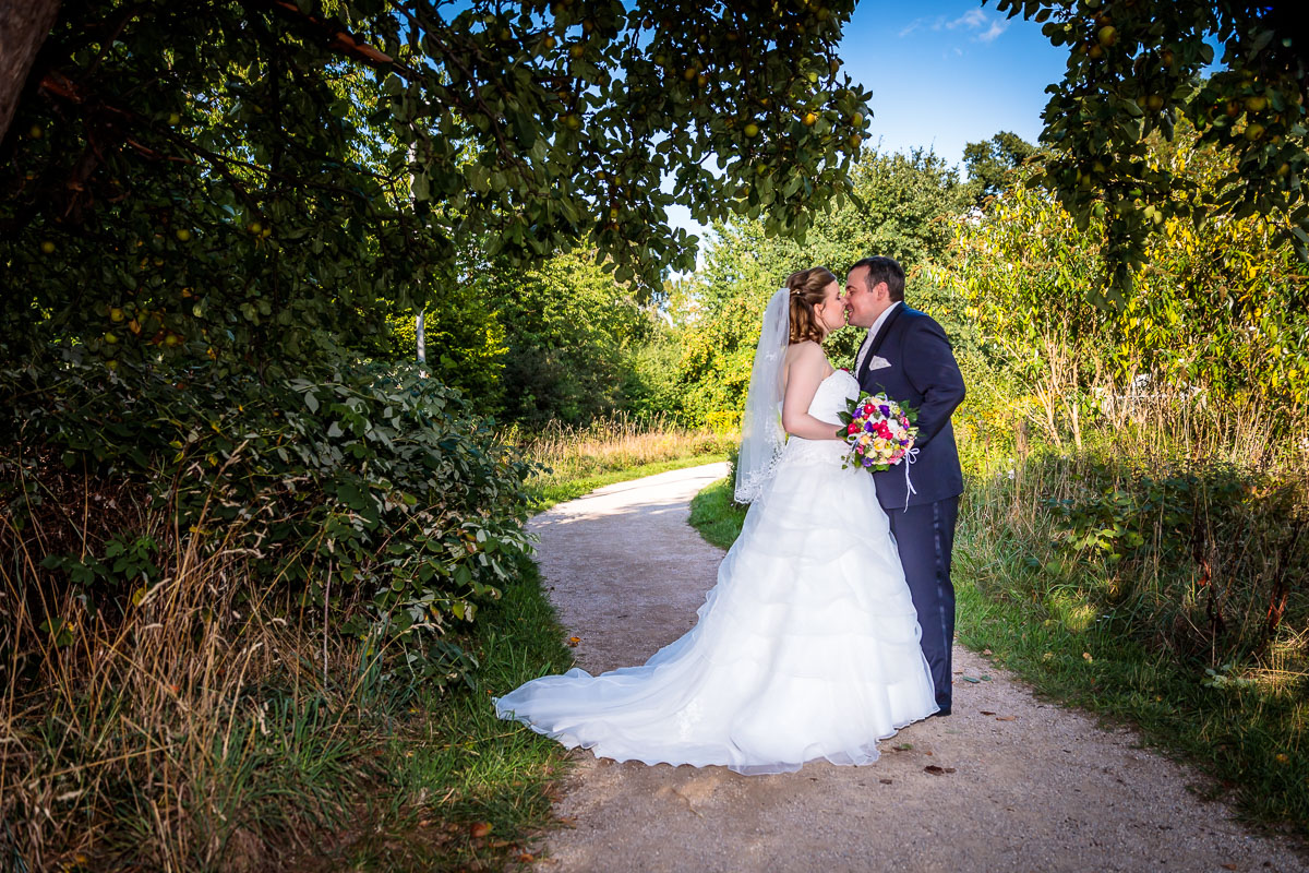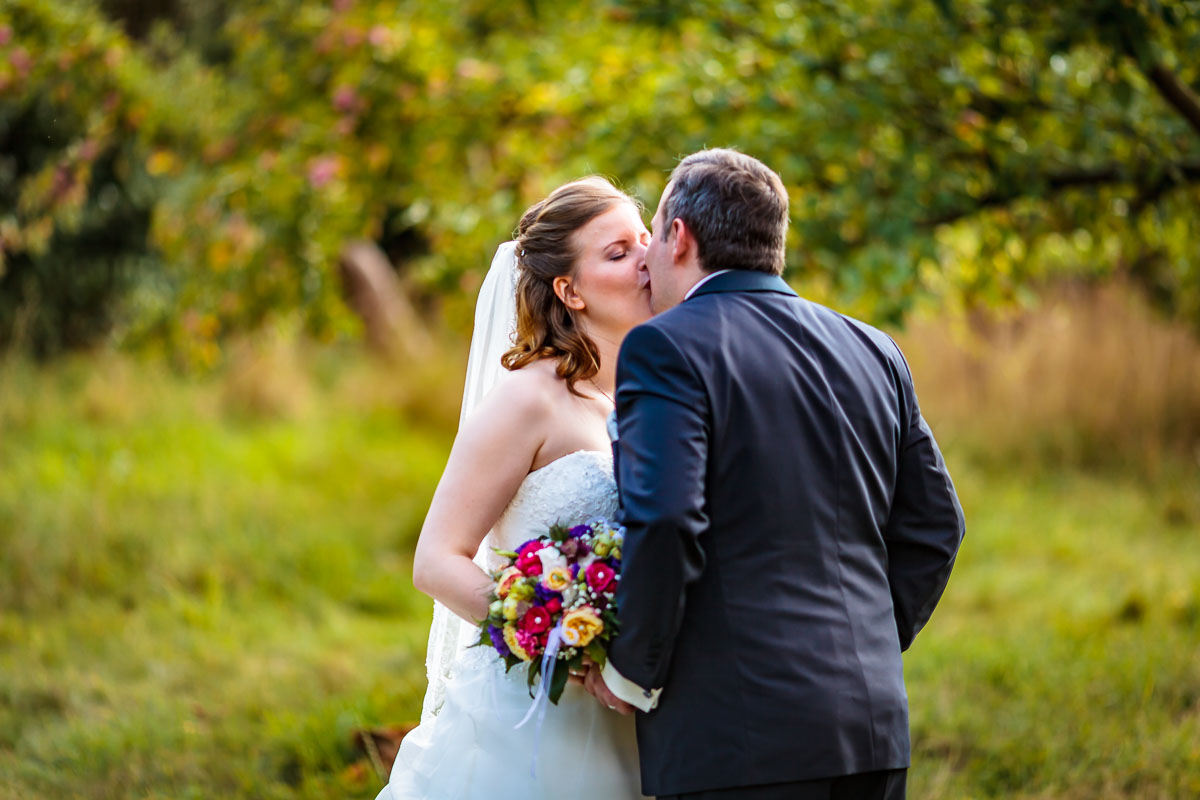 Am Gut Karlshöhe angekommen ließen wir die Gäste zur Location vorgehen und wir machten auf der anliegenden Obstwiese sowie den Wegen dort hin die Brautpaar Fotos bzw. das Brautpaarshooting.