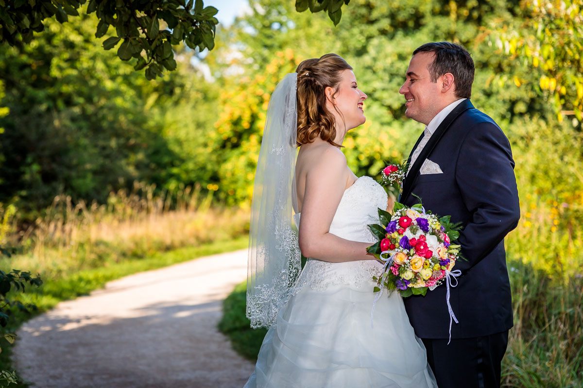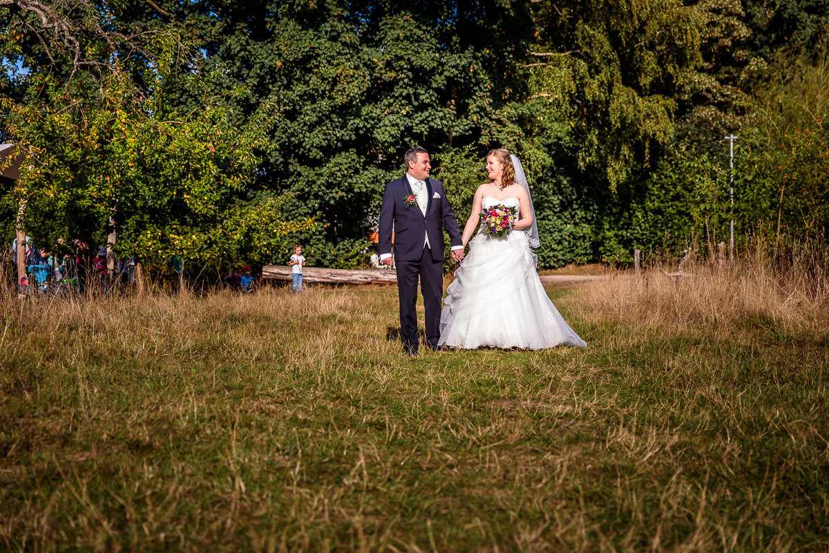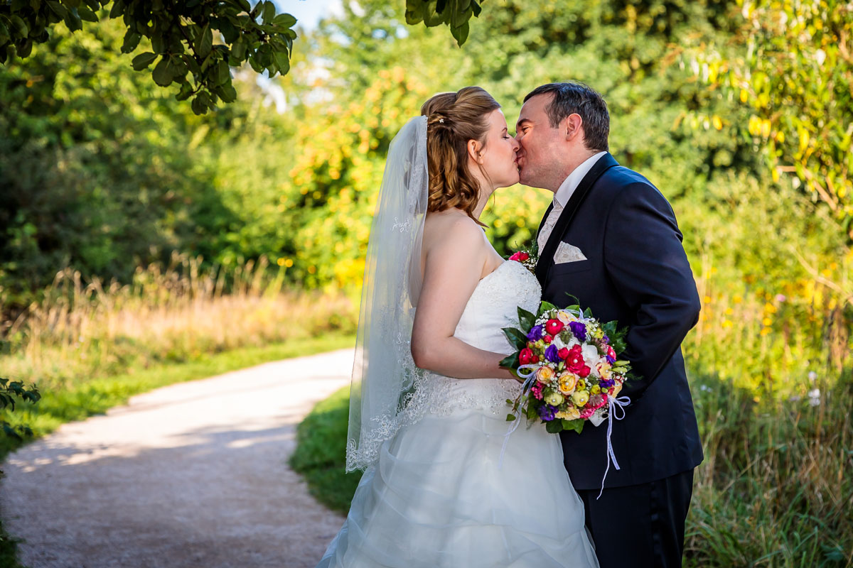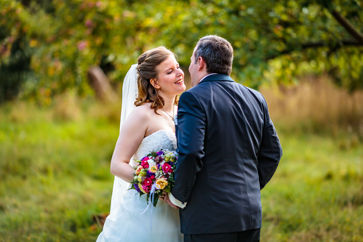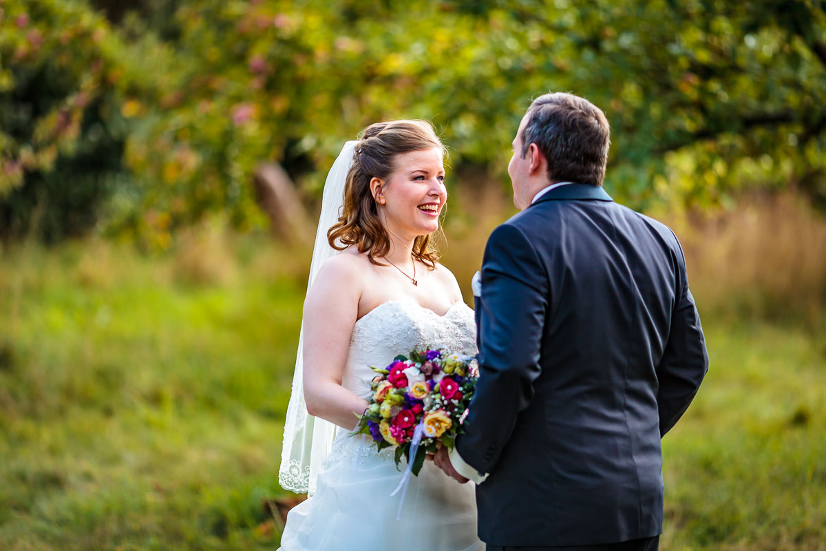 Am Gut Karlshöhe angekommen ließen wir die Gäste zur Location vorgehen und wir machten auf der anliegenden Obstwiese sowie den Wegen dort hin die Brautpaar Fotos bzw. das Brautpaarshooting.
